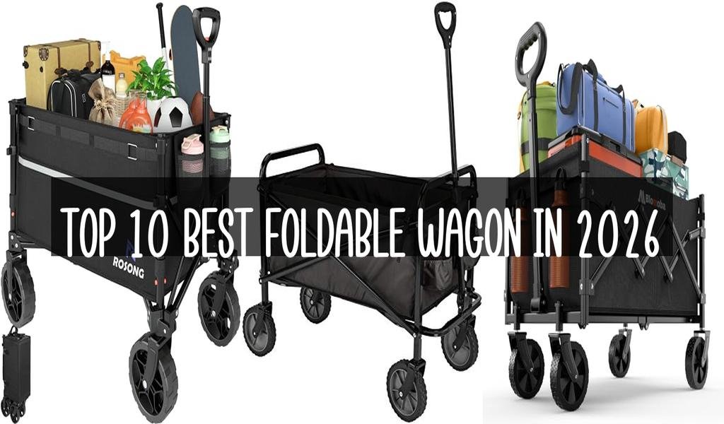 Yozoia Wagons Carts Foldable, Lightweight Portable Utility Shopping Cart with Wheels, Folding Grocery Wagon Cart for Grocery, Camping, Shopping, Beach, Garden, Sports Black